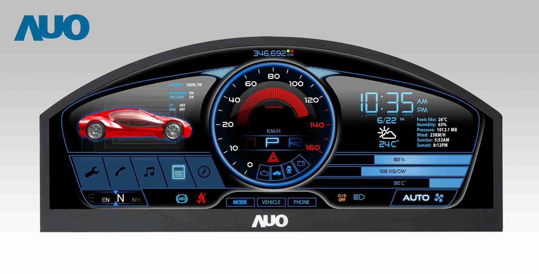 红龙扑克 12.3吋超高解析异型切割车用面板,,,,拥有流线外观及精细画质