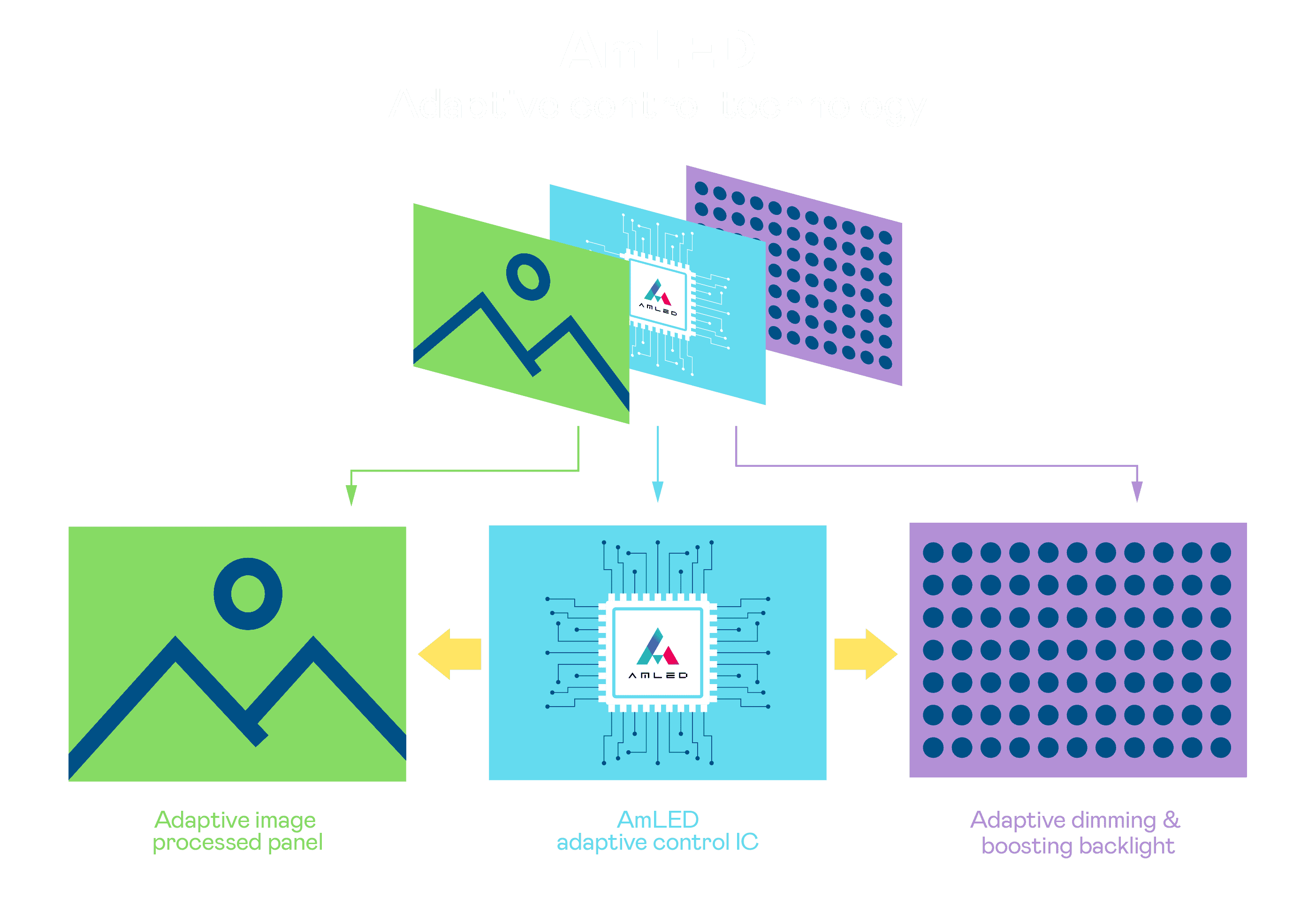 AmLED 具备更省电与低蓝光特性。。与一般的 LED 背光显示技术相比,,,由于 AmLED 常时处于局部调光状态,,,,其功耗仅有前者的 50% 左右,,,同时 AmLED 还具备低蓝光特性,,,满足长时间使用的护眼需求。。。。