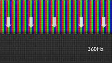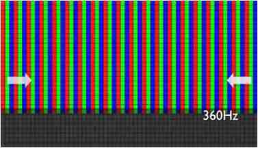 传统液晶驱动是从左到右单向进行,,,,在画面更新速度愈来越愈快的情况下,,位于驱动线路末端的右下角区域,,,,画素的闸极来不及在短时间内获得足够电压,,,,无法显示出正确的颜色资讯。。。。 |